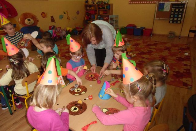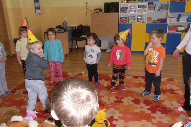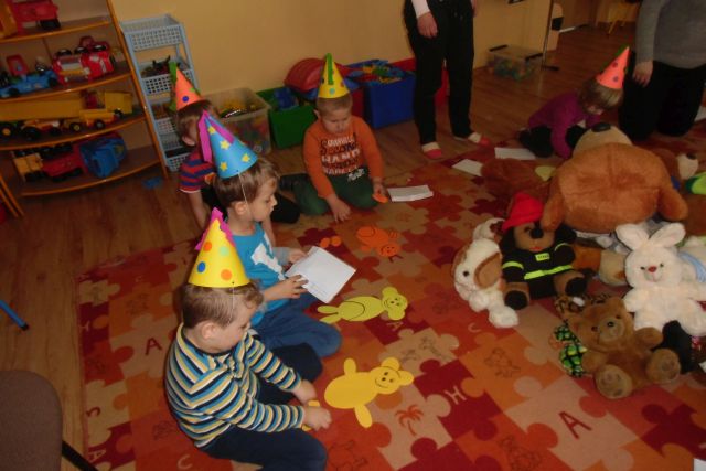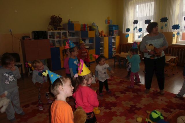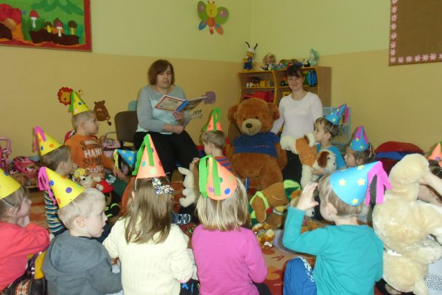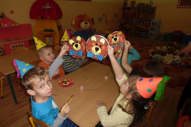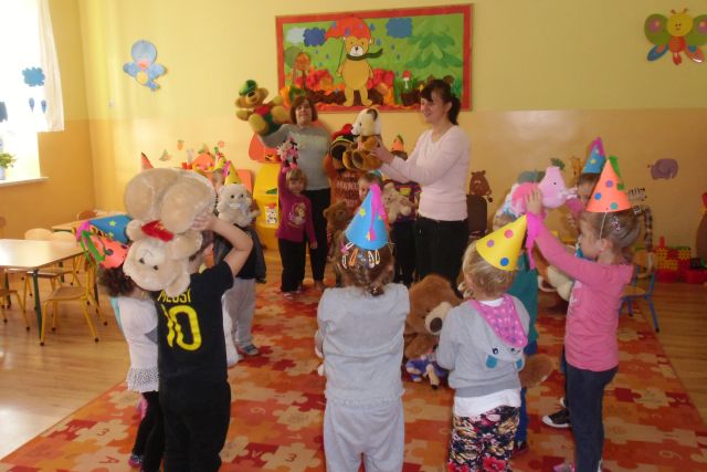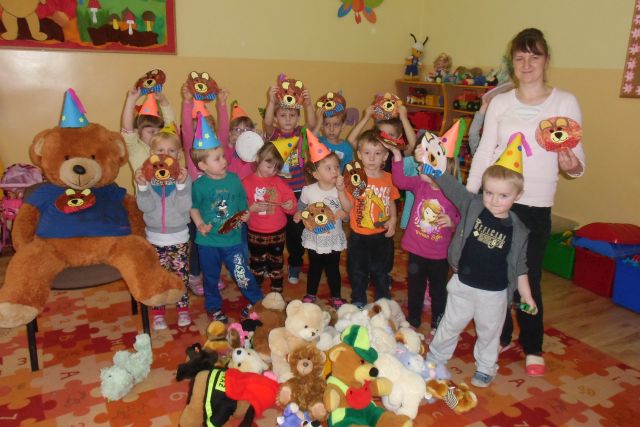 Każde dziecko na urodziny misia przyszło ze swoją ukochaną maskotką. Na początku przedszkolaki zapoznały się z historią pluszowego misia, który ma już 113 lat. Był czas na wspólne zabawy, np. gimnastyka z pluszakami, gorące rytmy misio – disco, „Stary niedźwiedź mocno śpi”,