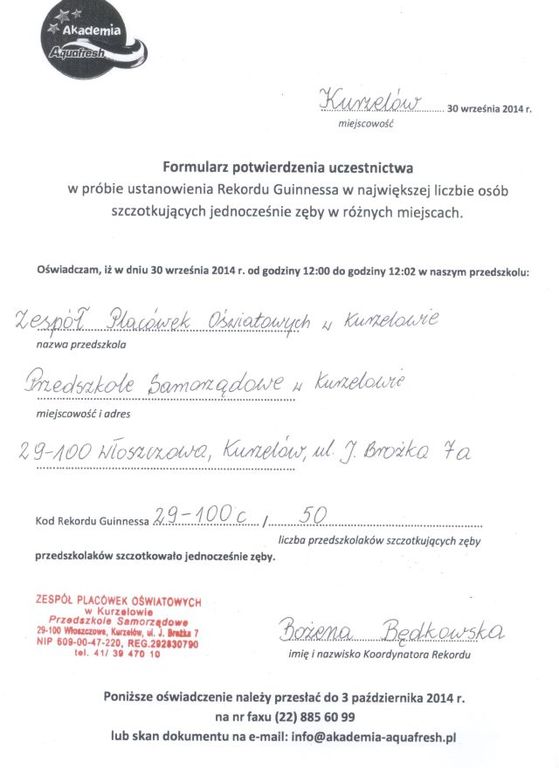 Bicie Rekordu Guinnessa w Przdszkolu Samorządowym w Kurzelowie
