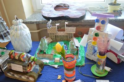 "Co mogą zrobić dzieci z segregowanych śmieci" - prace konkursowe uczniów ZPO w Kurzelowie