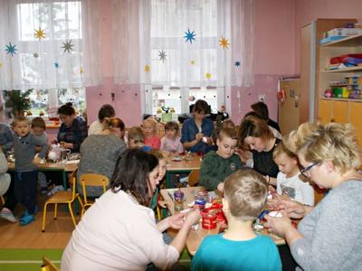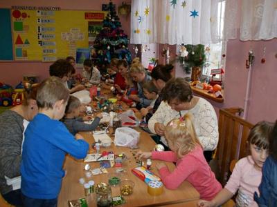 Ozdoby świąteczne w wykonaniu "Krasnoludków" i ich rodziców.