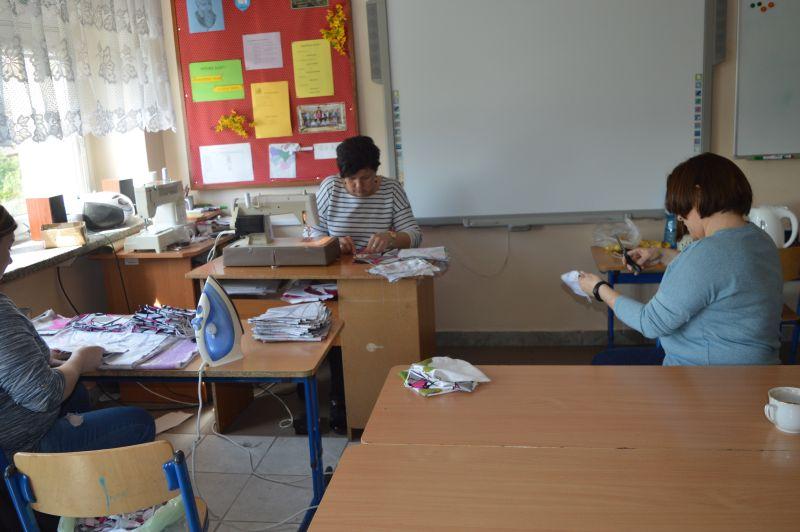 Szycie maseczek w ZPO w Kurzelowie