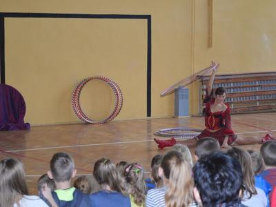 W dniu 13 listopada 2014 roku w szkole gościł cyrk "Obimbolando". Nasi uczniowie mieli okazję obejrzeć popisy cyrkowe i brać czynny udział w przedstawieniu. Dzięki temu, dzieci poprzez zabawę uczą się i rozwijają swoje zainteresowania.