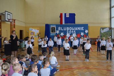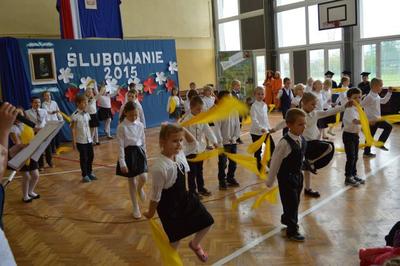 Tradycją naszej szkoły jest uroczystość ślubowania i pasowania na uczniów pierwszoklasistów. W tym roku szkolnym odbyła się ona 22.X.2015r. Mali artyści w pełnym humoru przedstawieniu pokazali swoje liczne talenty. Tańcem, śpiewem i piękną recytacją ujęli przybyłych na uroczystość gości: sekretarz Gminy Włoszczowa panią Henrykę Skiba, proboszcza parafii Kurzelów ks. Jacka Bonio, radnego Gminy Włoszczowa Jerzego Wiśniewskiego, sołtysa Kurzelowa Adama Stępniewicza oraz rodziców, dziadków i społeczność szkolną. Wielkim przeżyciem dla uczniów był moment złożenia przyrzeczenia, a następnie pasowania na ucznia, którego dokonała pani dyrektor Anna Wyrwał. Zaproszeni goście złożyli życzenia oraz wręczyli upominki dla pierwszoklasistów. Następnie rodzice podziękowali pani Dyrektor za przyjęcie uczniów w poczet społeczności szkolnej. Słowa wdzięczności skierowali również do wychowawczyń, pani Marii Bała i pani Danuty Tobiasz za przygotowanie tak wspaniałej uroczystości. Całą imprezę zakończyło wręczanie rożków obfitości, które przygotowali rodzice dla swoich milusińskich oraz pamiątkowe wspólne zdjęcia.