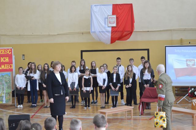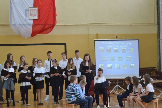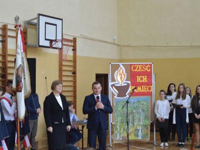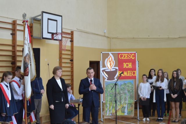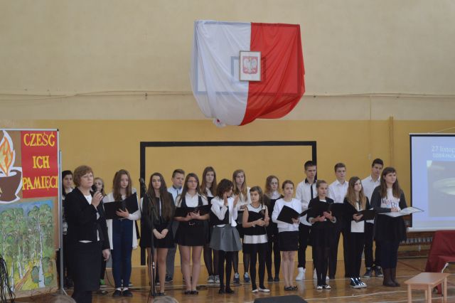 Obchody rozpoczął montaż słowno-muzyczny w wykonaniu uczniów naszej szkoły, który przybliżył dramatyczne wspomnienia wydarzeń z 1943r. Następnie udaliśmy się do kościoła parafialnego, gdzie ksiądz proboszcz odprawił Mszę św. w intencji pomordowanych. Po zakończonym obrzędzie liturgicznym poczty sztandarowe, delegacje, młodzież szkolna i przybyli goście udali się na Mały Cmentarz. Przy zbiorowej mogile pomordowanych delegacje złożyły wiązanki kwiatów i zapaliły znicze, ksiądz proboszcz odmówił modlitwy w Ich intencji. Odczytano również Apel Poległych, uczennice kl. III PG odegrały Rotę.
