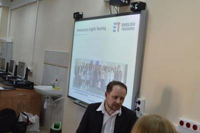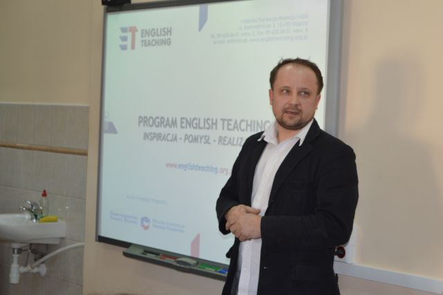 Prezentacja programu English Teaching oraz Ogólnopolskiego Stowarzyszenia Anglistów (OSA) przeprowadzona przez Ambasadora ET Piotra Sznajdera na szkoleniu pt. "Sieć współpracy i samodoskonalenia nauczycieli języka angielskiego w klasach 1-3", które odbyło się 16 marca 2016 roku w Świętokrzyskim Centrum Doskonalenia Nauczycieli w Kielcach.