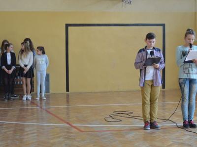 W dniu 13 kwietnia 2016 roku uczniowie naszej szkoły przedstawili w Domu Kultury we Włoszczowie montaż słowno-muzyczny z okazji 76 rocznicy Zbrodni Katyńskiej oraz 6. rocznicy Katastrofy Smoleńskiej. Przypomnieli tragiczne losy polskich jeńców wymordowanych w Katyniu, Starobielsku, Ostaszkowie, Charkowie i Miednoje. Uczcili pamięć tych, którzy mieli oddać hołd pomordowanym, ale sami zginęli