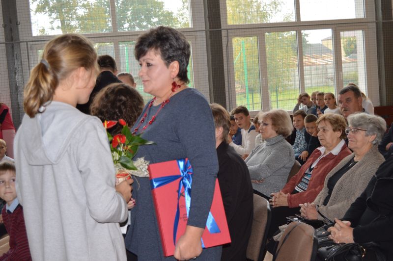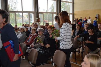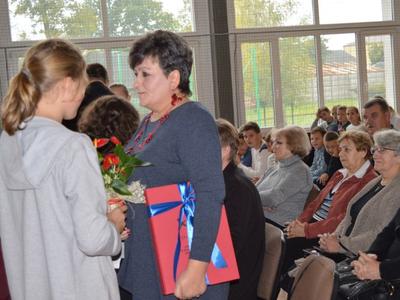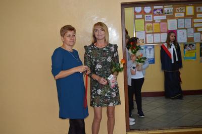 W dalszej części Dyrektor szkoły Anna Wyrwał powitała wszystkich zgromadzonych, w tym przedstawicieli Gminy i Powiatu Włoszczowa, emerytowanych nauczycieli, księży oraz rodziców. Z okazji święta edukacji złożyła życzenia nauczycielom i podziękowała za ich pracę oraz szczególne podziękowania złożyła nagrodzonym nauczycielom.