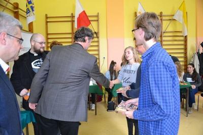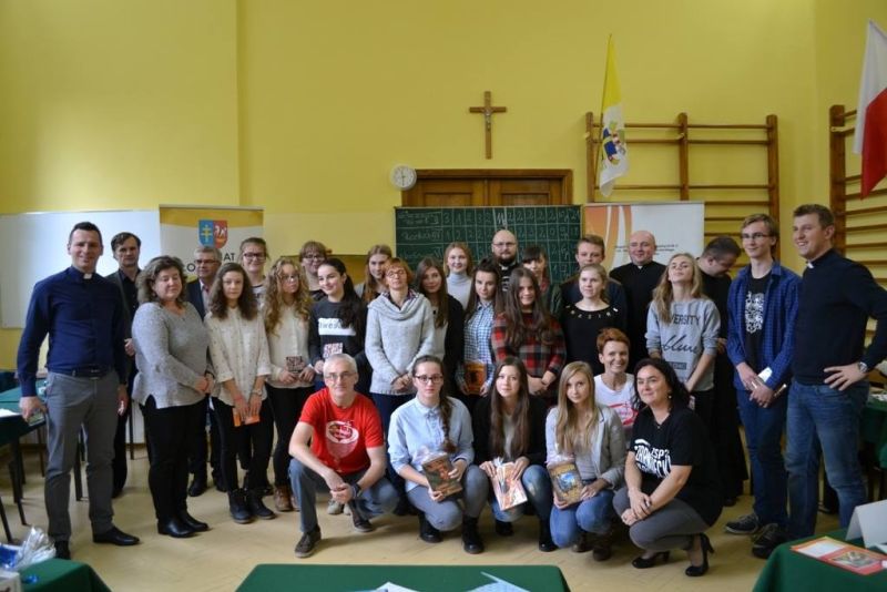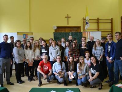 W poniedziałek reprezentacja uczniów Naszej Szkoły wzięła udział w konkursie wiedzy o św. Janie Pawle II zorganizowanym w Zespole Szkół Ponadgimnazjalnych Nr 2. Tematem tegorocznego konkursu były światowe Dni Młodzieży. Nasza drużyna w składzie: Marcin Kusa, Ewelina Kusa, Bartłomiej Cisowski dzielnie walczyła ze swoimi rówieśnikami z terenu naszej gminy, ale i nie tylko.