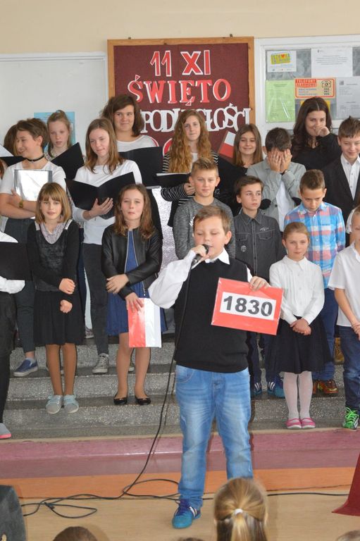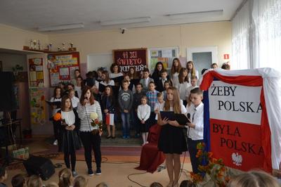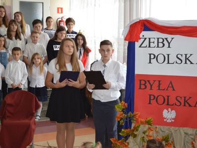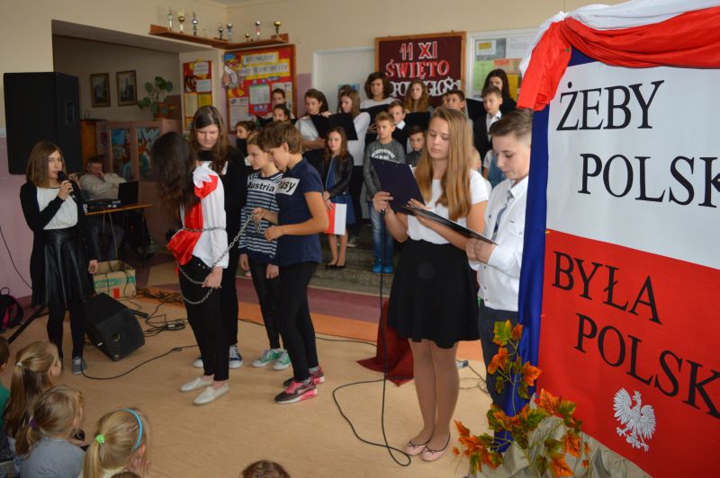 10 listopada 2016 roku w naszej szkole odbyła się uroczysta akademia z okazji 98 rocznicy odzyskania przez Polskę Niepodległości. Uczniowie pod kierunkiem pani Izabeli Cegieły i pana Piotra Mikuły przedstawili montaż słowno – muzyczny poświęcony historii naszego kraju od pierwszego rozbioru Pollski w roku 1772 do czasów współczesnych. Akademia stała się wspaniałą okazją do przypomnienia najważniejszych faktów historycznych z długiej wędrówki Polaków po wolność oraz lekcją patriotyzmu skierowaną do wszystkich uczestników.