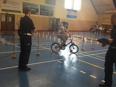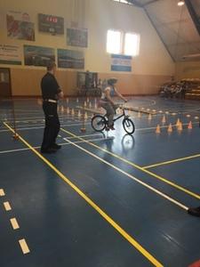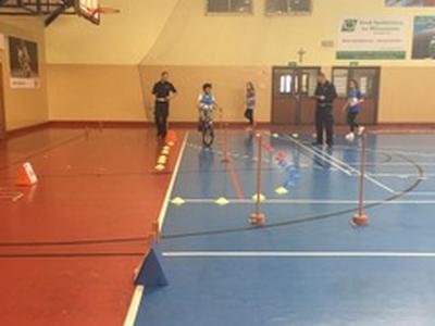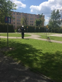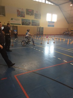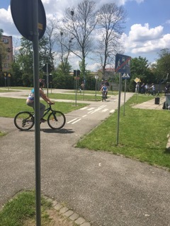 Uczniowie wykazywali się wiedzą ze znajomości przepisów ruchu drogowego oraz umiejętnościami w pokonywaniu toru przeszkód i jazdy w miasteczku ruchu.