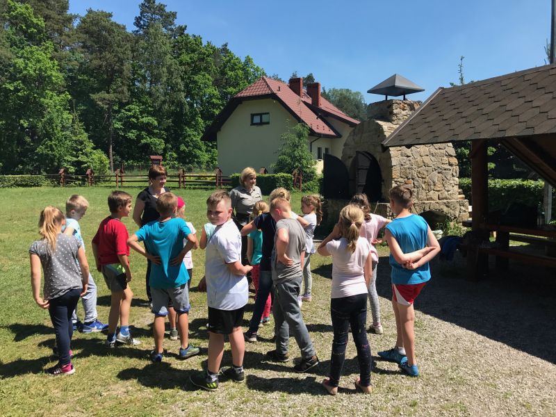 Przygotowane przez nas konkurencje sportowe zintegrowały wszystkich w 100%. Wspaniały humor towarzyszył nam przy pieczeniu kiełbasek i wspólnej biesiadzie. Obdarowani upominkami wróciliśmy do szkoły. Mamy nadzieję ,że powtórzymy to za rok.