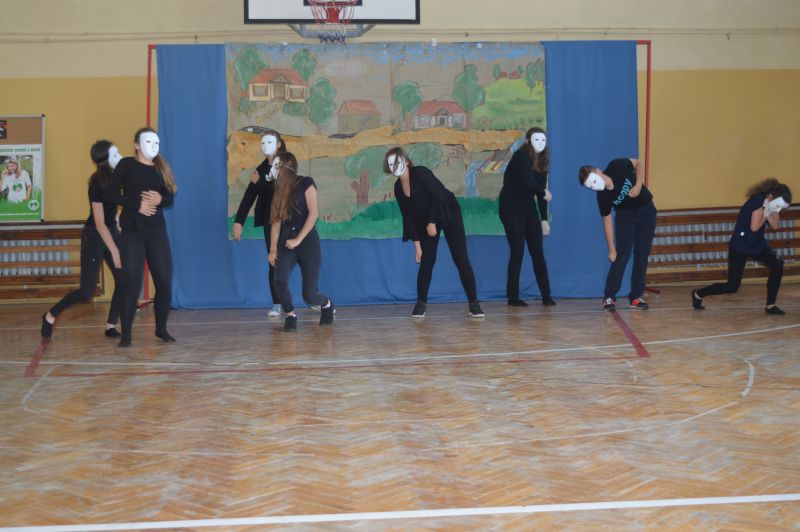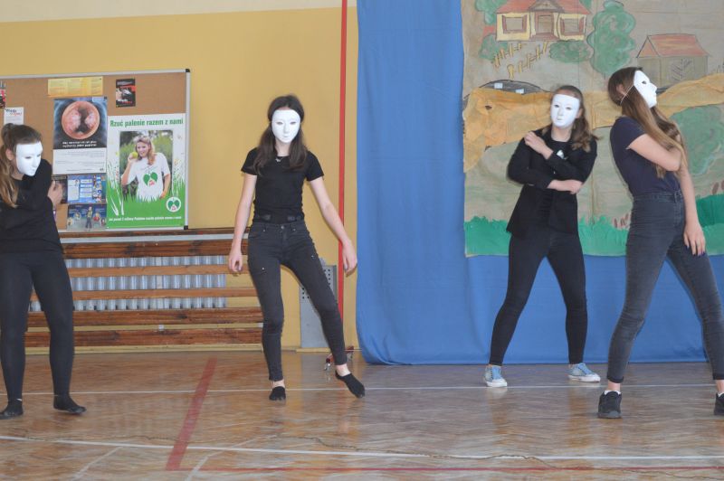 Tematem spektaklu było ukazanie zgubnego wpływu alkoholu. Zgromadzeni na sali gimnastycznej uczniowie z uwagą śledzili dynamiczną akcję i nagradzali brawami grę "aktorów", a po zakończeniu komentowali i dyskutowali nad przesłaniem przedstawienia.