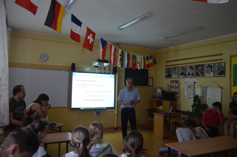Warsztaty językowo-kulturowe przeprowadzone przez Native Speakera przybliżyły uczniom codzienne życie mieszkańców Ameryki oraz zachęciły młodzież do porozumiewania się w języku angielskim. Podczas warsztatów młodzież uczestniczyła w różnorakich grach, zabawach i quizach językowych. Poznali między innymi najlepsze przysmaki Chicago takie jak: Sloppy Joe, Reuben Sandwich, Deep Dish Pizza i Chicago Style Hot DogWe.