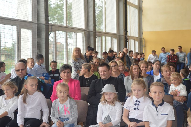 W inauguracji nowego roku szkolnego 2017/2018 uczestniczyli: Naczelnik Wydziału Spraw Obywatelskich pani Grażyna Albrycht, proboszcz ks.Jacek Bonio, nauczyciele, rodzice oraz przyjaciele szkoły.