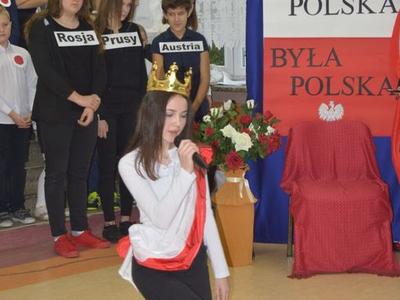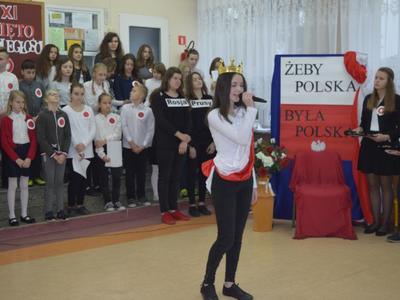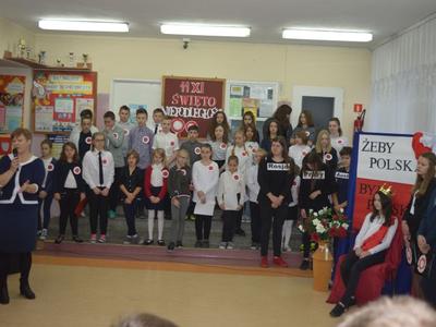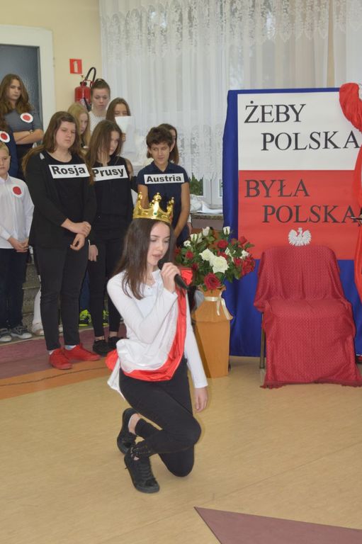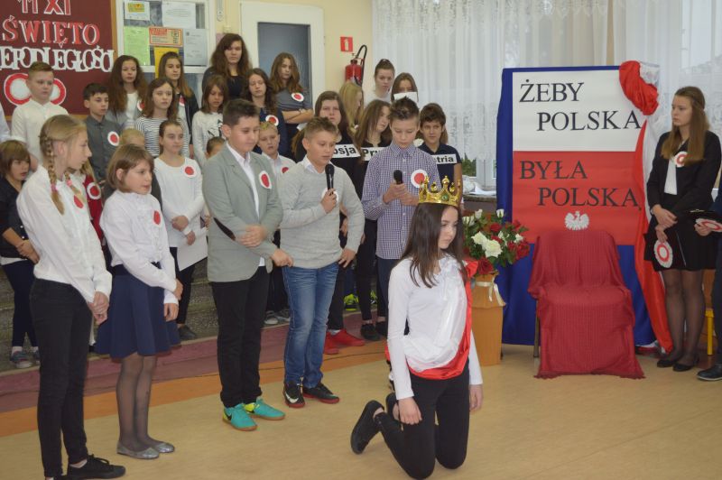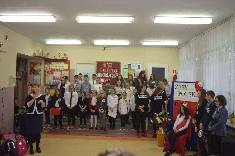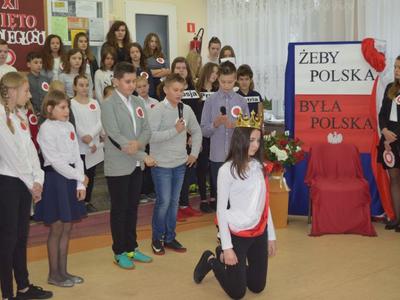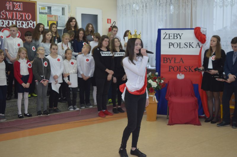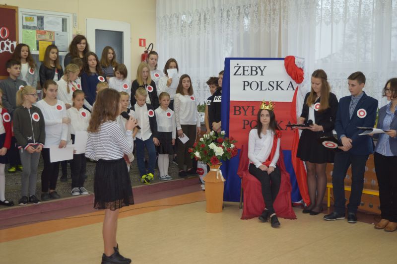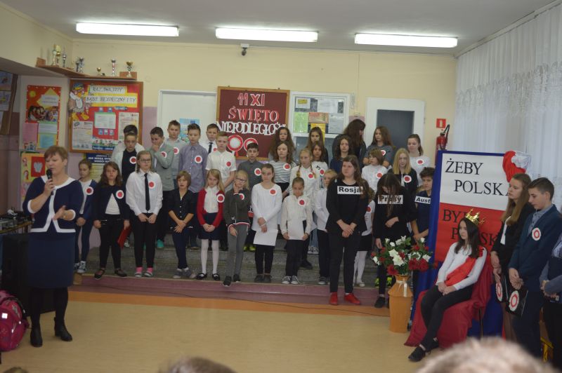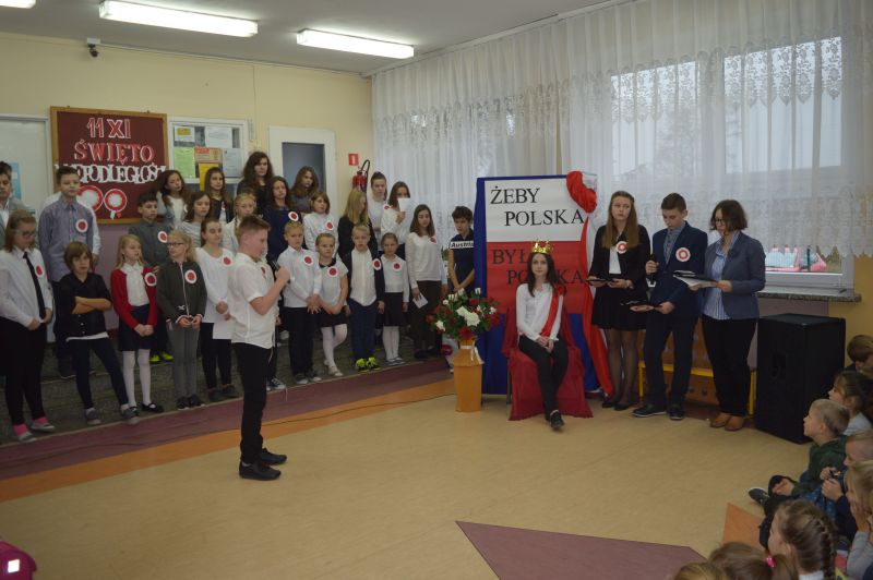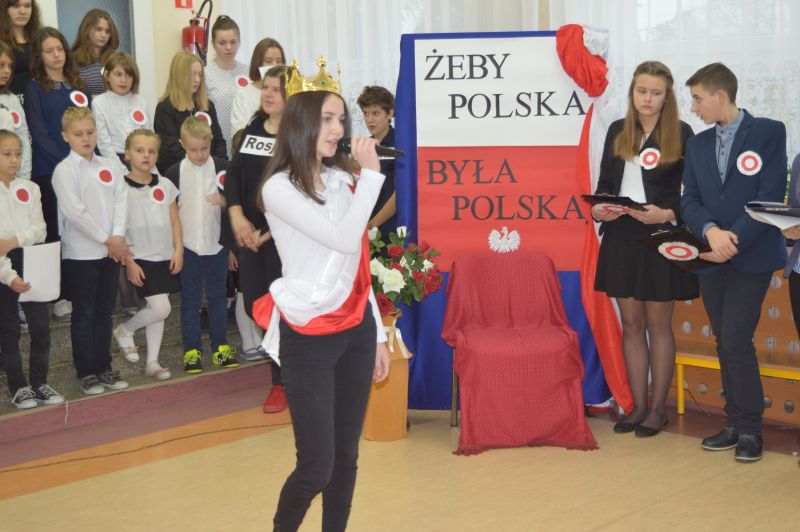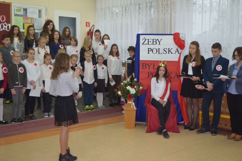 10 listopada 2017 roku w naszej szkole odbyła się uroczysta akademia z okazji 99 rocznicy odzyskania przez Polskę Niepodległości. Uczniowie pod kierunkiem pań: Izabeli Cegieły, Beaty Janaczek oraz pana Piotra Mikuły przedstawili montaż słowno – muzyczny poświęcony historii naszego kraju od pierwszego rozbioru Polski w roku 1772 do czasów współczesnych. Akademia stała się wspaniałą okazją do przypomnienia najważniejszych faktów historycznych z długiej wędrówki Polaków po wolność oraz lekcją patriotyzmu skierowaną do wszystkich uczestników.