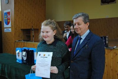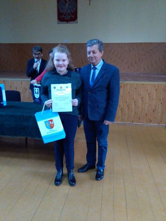 Nagrody z rąk pana Starosty Zbigniewa Krzyśka odebrali miedzy innymi uczniowie naszej szkoły podstawowej: Jakub Kryczka uczeń klasy III B – wyróżnienie oraz Martyna Dankowska uczennica klasy V – II miejsce.