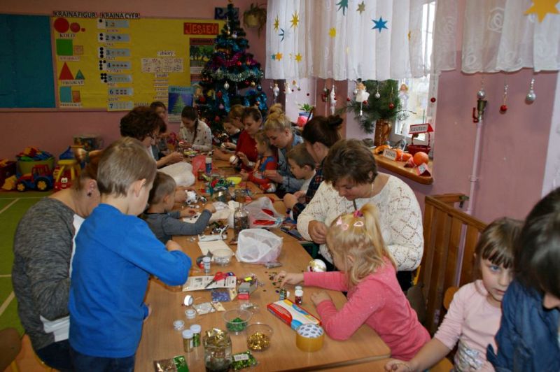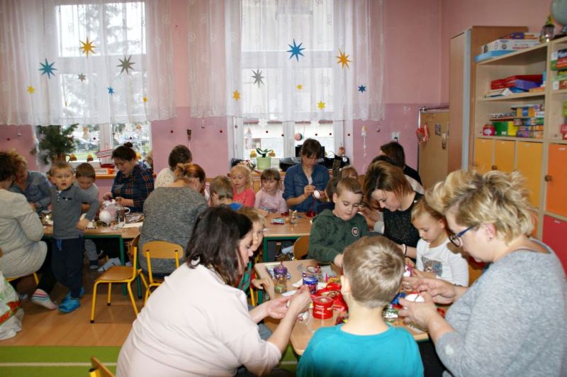 Rodzice i ich dzieci z wielkim zaangażowaniem wykonali ozdoby Bożonarodzeniowe, za co bardzo dziękują wychowawcy, pani Agata Ziółkowska i pani Bożena Będkowska.