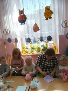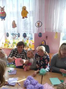 W grupie "Krasnoludki" odbyły się zajęcia otwarte, na których dzieci poznały tradycje Świąt Wielkanocnych. Wspólnie z rodzicami wykonywały kwiaty z bibuły do ozdobienia dużej Palmy na Parafialny Konkurs Palm. Dzieci z pomocą rodziców ozdabiały różnymi kreatywnymi artykułami styropianowe jajeczka, które zabrały ze sobą do domu.