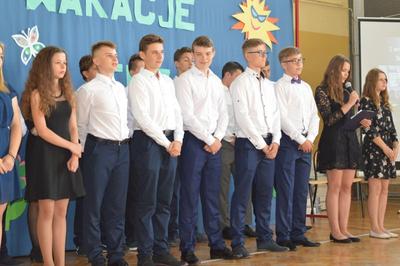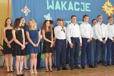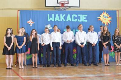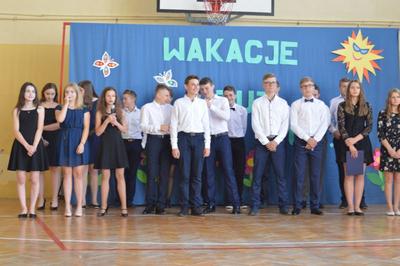 W dniu 20 czerwca 2018 roku najstarsi uczniowie gimnazjum dziękowali wychowawcy, nauczycielom, uczniom, pracownikom szkoły oraz pani dyrektor za 9 lat wspólnych zmagań z edukacją. Trzecioklasistów żegnali ich rocznikowo młosi koledzy i koleżanki z gimnazjum. Panowała wspaniała atmosfera, nie zabrakło również wzruszeń.