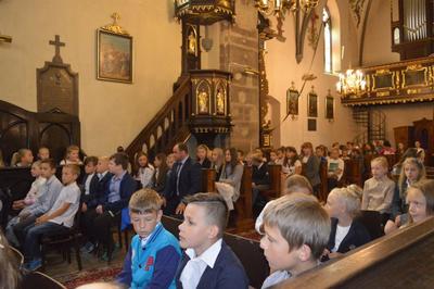 22 czerwca 2018 roku, po mszy świętej o godz. 8.30, w naszej szkole uroczyście pożegnaliśmy rok szkolny 2017/2018. W uroczystości zakończenia roku szkolnego wzięli udział wychowawcy, nauczyciele, rodzice, uczniowie oraz goście: ksiądz proboszcz Jacek Bonio oraz w-ce burmistrz Gminy Włoszczowa pan Sławomir Owczarek.