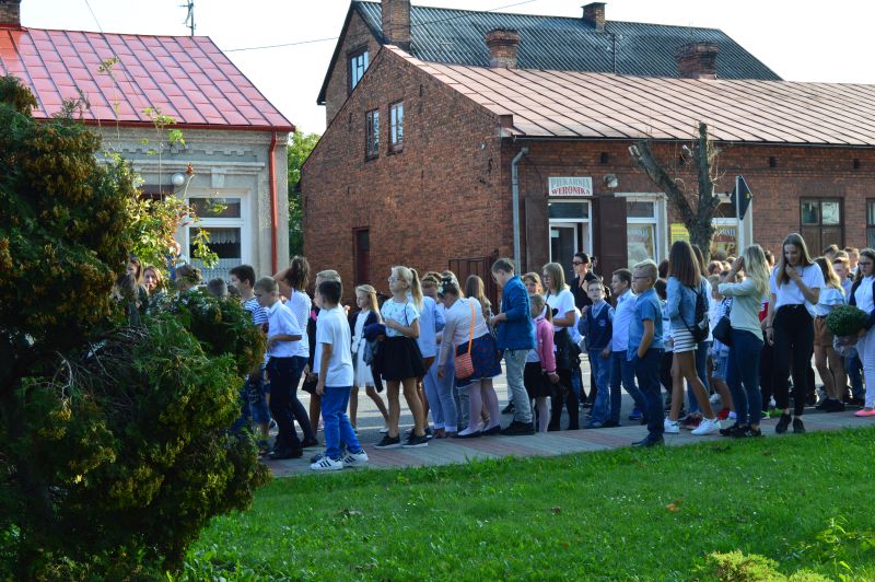Następnie uczniowie wraz z nauczycielami udali się na Mały Cmentarz, aby uczcić rocznicę wybuchu II wojny światowej oraz pamięć pomordowanych w czasie II wojny światowej mieszkańców Kurzelowa. Złożyli również kwiaty pod pomnikiem patrona szkoły Jana Brożka, po czym wrócili do szkoły, gdzie o godzinie 9.45 na sali rozpoczęła się uroczysta inauguracja roku szkolnego 2018/2019.