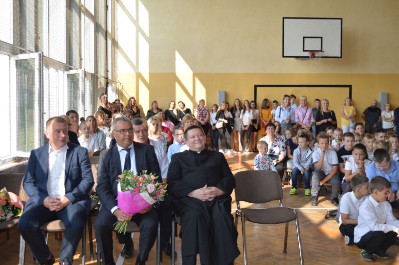 Po uroczystym wprowadzeniu sztandaru i odśpiewaniu hymnu państwowego, zgromadzonych na sali gimnastycznej powitał Dyrektor szkoły, pan Norbert Celebański. Uroczystość uświetnili swoją obecnością : Zastępca Burmistrza Gminy Włoszczowa pan Sławomir Owczarek , Ks. Proboszcz Jacek Bonio, radny Rady Miejskiej pan Jerzy Wiśniewski, Sołtys Kurzelowa Adam Stępniewicz, Dyrektor Domu Kultury w Kurzelowie pani Beata Gieroń, przedstawiciele Rady Rodziców przy ZPO w Kurzelowie oraz rodzice