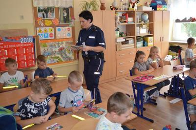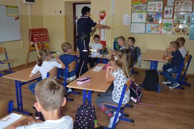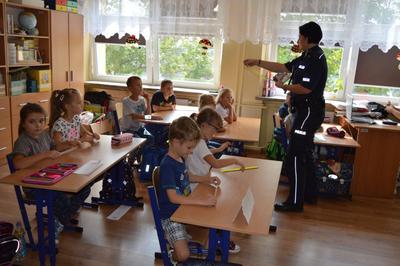 Początek września jest dobrą okazją do przeprowadzenia prelekcji na temat zasad bezpieczeństwa dzieci w drodze do i ze szkoły. Uczniowie klasy 1 Szkoły Podstawowej mieli możliwość spotkać się z dzielnicową mł.asp. Katarzyną Szczecińską, która przypomniała o podstawowych zasadach poruszania się po drodze.