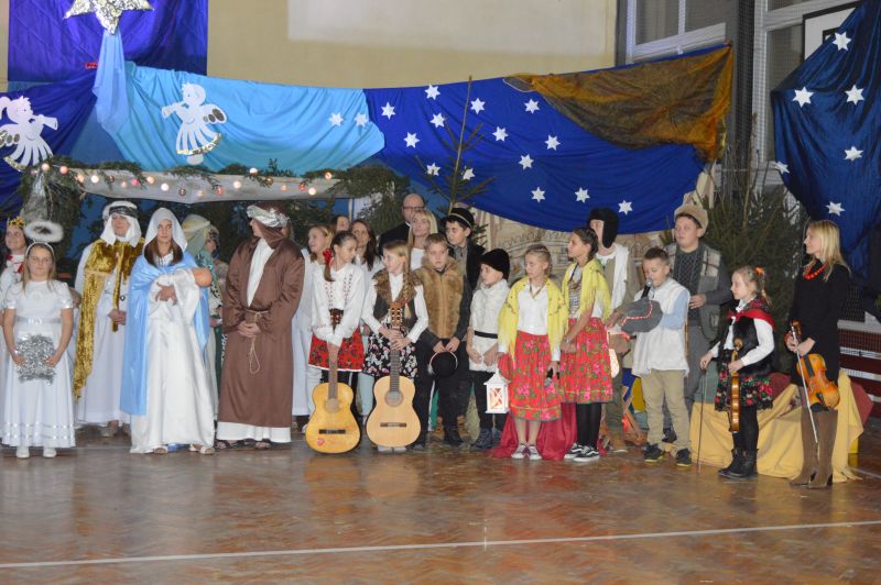 Dyrektor szkoły, składając na zakończenie świąteczne życzenia, serdecznie podziękował wszystkim osobom, które brały udział i zaangażowały się w przygotowanie tegorocznego Misterium Bożonarodzeniowego.