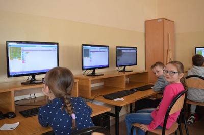 Pracują z urządzeniami cyfrowymi: korzystają ze środowisk umożliwiających programowanie, np. Scratch, język Blockly (Godzina Kodowania i programowanie robotów), praca przy laptopach/komputerach; w programowaniu korzystają z gotowych aplikacji i zasobów, modyfikują je, w tym także z zasobów online.