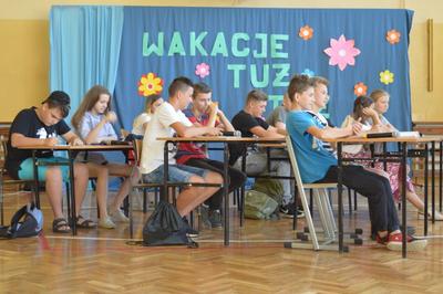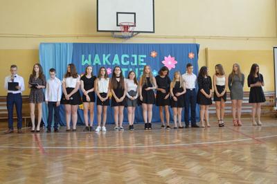 W dniu 12.06.2019r w naszej szkole odbyło się pożegnanie najstarszych klas- ósmej i trzeciej gimnazjum. W tej szczególnej uroczystości uczestniczyła kadra pedagogiczna, pracownicy szkoły oraz rodzice. Młodzież przygotowała montaż słowno- dźwiękowy podsumowujący ich pobyt w placówce, w którym zawarli elementy poważne jak i humorystyczne. Przyszli absolwenci gorąco podziękowali rodzicom, nauczycielom i pracownikom szkoły za trud włożony w ich naukę i wychowanie. Przedstawiciele klasy siódmej również skierowali kilka ciepłych słów w stronę swoich starszych kolegów oraz obdarowali ich własnoręcznie wykonanymi słodkimi babeczkami. Było wiele wzruszeń i niejednej osobie zakręciła się w oku łezka. Na zakończenie miało miejsce spotkanie pożegnalne, gdzie uczniowie wraz z rodzicami i wychowawcami spędzili miłe chwile przy słodkim poczęstunku oraz przy grillu.