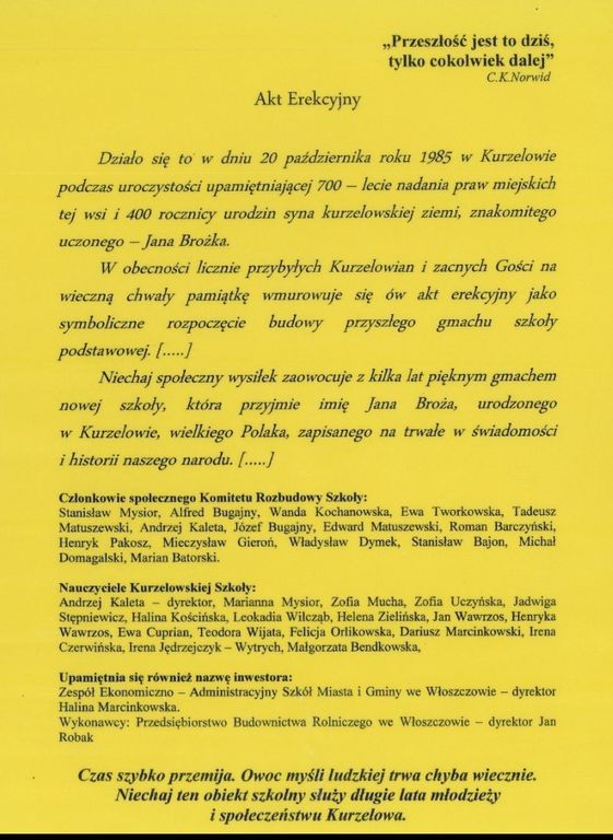 15 października 2019r. Święto Patrona oraz Jubileusz 30 lecia oddania do użytku budynku szkolnego obchodzi Szkoła Podstawowa im. Jana Brożka w Kurzelowie.