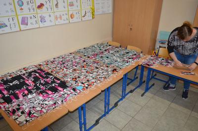 Od dwóch tygodni w Zespole Placówek Oświatowych w Kurzelowie trwa wielkie szycie maseczek wielokrotnego użytku.