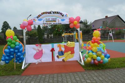 Dzieci uczęszczające do Przedszkola Samorządowego w Kurzelowie pod kierunkiem wychowawców zaprezentowały swoje umiejętności artystyczne. Recytowały wiersze, śpiewały piosenki i symbolicznie wypuściły w niebo kolorowe balony. Swoim występem wyraziły radość oraz podziękowanie z powstania placu zabaw.