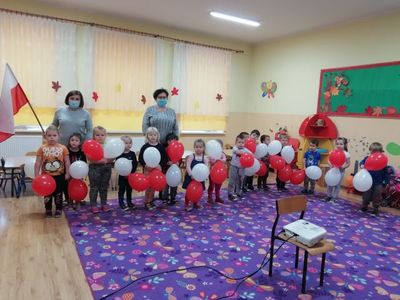 10 listopada o godzinie 11:11 dzieci z grupy Motylki odśpiewały Hymn Polski łącząc się ze wszystkimi placówkami oświatowymi w Polsce. Poznały także symbole narodowe i krótką historię Odzyskania Niepodległości. Dumnie trzymały balony