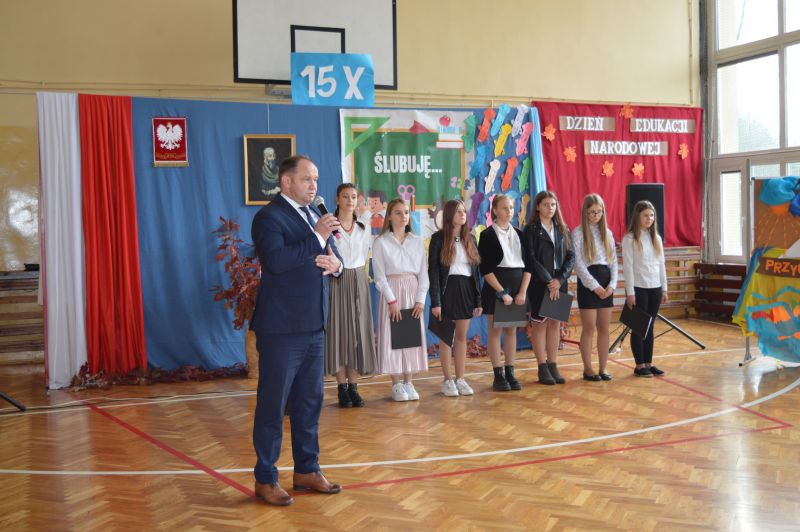 W dalszej części uroczystości pierwszoklasiści złożyli ślubowanie i zostali pasowani przez Dyrektora Norberta Celebańskiego na uczniów Szkoły Podstawowej im. Jana Brożka w Kurzelowie.