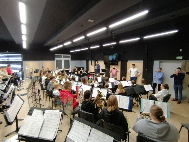 W dniu 02.12.2023r. w Krasocinie, uczniowie oraz absolwenci Zespołu Placówek Oświatowych w Kurzelowie wzięli udział w warsztatach muzycznych, których celem było doskonalenie umiejętności gry na instrumentach dętych. Zajęcia z wieloma instruktorami dla młodych i uzdolnionych instrumentalistów zorganizował Urząd Marszałkowski w Kielcach oraz Oddział Powiatowy ZOSP RP we Włoszczowie na czele z Prezesem druhem Bartłomiejem Robakiem.