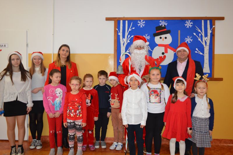 6 grudnia w naszej szkole i przedszkolu panowała niezwykła, świąteczna atmosfera. Mróz za oknem i prószący śnieżek tworzyły idealną scenerię dla Mikołajek. Od samego rana po szkolnych korytarzach biegali uczniowie w mikołajkowych czapkach i strojach z akcentem świątecznym. Na Świętego Mikołaja czekali z niecierpliwością przede wszystkim uczniowie klas 1-3 oraz nasze przedszkolaki. Gość został przez nich przyjęty z ogromnym entuzjazmem i radością. Było mnóstwo uśmiechów i prezentów. Śnieżynki częstowały cukierkami i wspomagały Mikołaja.
