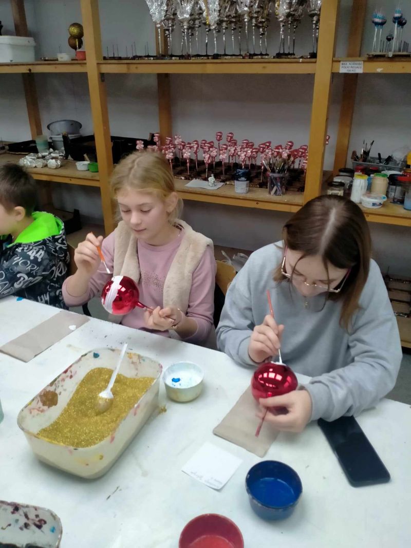 Szklane ozdoby choinkowe od pokoleń są najpopularniejszą i najpiękniejszą grudniową dekoracją. Jak powstają te wszystkie kruche, szklane cuda? Odpowiedź na to pytanie poznali uczniowie klasy II, IIIa, IIIb oraz IV podczas wycieczki do fabryki bombek w Olkuszu. Proces wytwarzania bombek jest bardzo ciekawy, wieloetapowy, pracochłonny i wymagający ogromnej fachowości. Dzieci miały możliwość zobaczenie tego z bliska. Obserwowano wszystkie etapy pracy, w tym zdobienie ręczne, które wymaga precyzji i cierpliwości. Uczniowie udekorowali także swoją bombkę podczas warsztatów. Każdy mógł je ozdobić według własnego pomysłu.