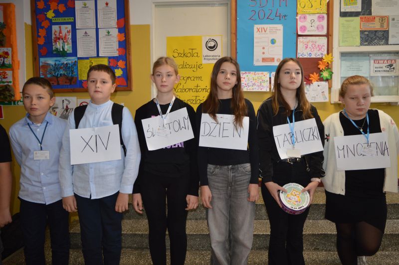 XIV Światowy Dzień Tabliczki Mnożenia to okazja do utrwalenia umiejętności sprawnego posługiwania się tabliczką mnożenia, a jednocześnie dobra zabawa edukacyjna. Uczniowie już wcześniej w formie zabawowej na różne sposoby ćwiczyli tabliczkę mnożenia po to, aby w dniu 15 listopada 2024r wziąć udział w pisemnym egzaminie z tabliczki mnożenia- dobrze, na czas obliczyć wylosowane przykłady i uzyskać tytuł: „Ekspert Tabliczki Mnożenia”. Całą akcję otworzył uroczyście pan dyrektor Norbert Celebański, przedstawił skład komisji egzaminacyjnych: Nikodem Batorski,Wojciech Ciszewski, Anastazja Jędrych, Marta Kaleta, Maja Cisowska, Nikola Ciszewska, Dawid Kremblewski, Wojtek Rydzek, Igor Wąchała .