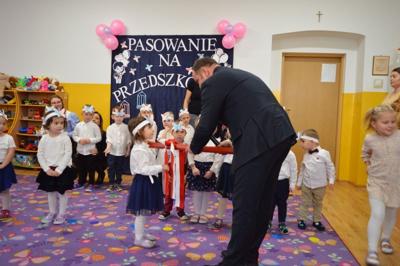 Pasowanie na Przedszkolaka. W dniu 26 listopada odbyło się uroczyste pasowanie na przedszkolaka. Galeria zdjęć Powiązane wiadomości XIV Światowy Dzień Tabliczki Mnożenia BEZPIECZEŃSTWO NA PIĄTKĘ. DZIEŃ PLUSZOWEGO MISIA. Pasowanie na Przedszkolaka. 81 rocznica Tragedii Kurzelowskiej. Andrzejki w grupie Krasnoludki i Biedroneczki. Drukuj Udostępnij Data dodania: 26.11.2024 Wyświetlono: 201 Aktualności