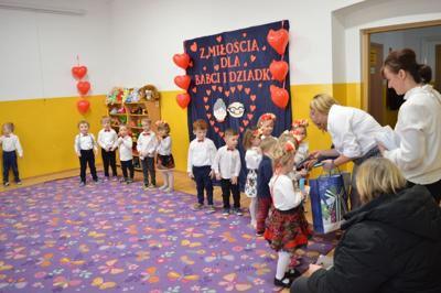 Natomiast przedszkolaki z grupy Biedroneczki zaprezentowały swoim Babciom i Dziadkom przedstawienie "Jasełkowe" połączone z życzeniami, przygotowanymi specjalnie na tę okazję. Święto Babci i Dziadka uczcili także przedszkolaki z gryp: Biedroneczki i Motylki. Dzieci wręczyły przygotowane upominki. Babcie i Dziadkowie z zachwytem podziwiali swoje wnuczęta występujące specjalnie dla nich. Dzieci za piękne występy zostały nagrodzone brawami oraz słodkimi upominkami.