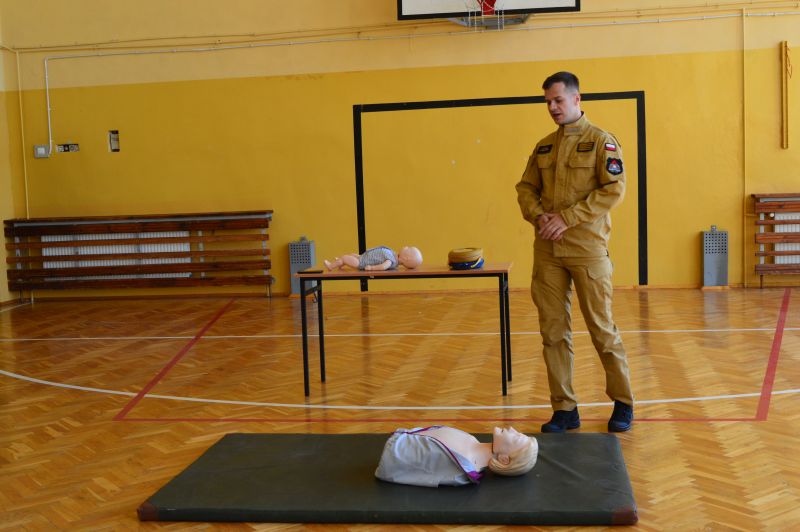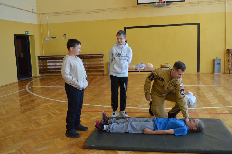 W dniu 28 kwietnia 2025 roku odbyła się niecodzienna lekcja z pierwszej pomocy przedmedycznej, którą poprowadził dla naszych uczniów funkcjonariusz PSP we Włoszczowie Pan Wojciech Plebanek.