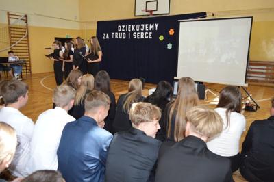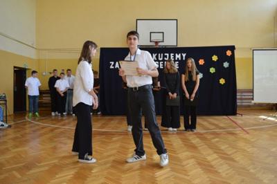 Tak ósmoklasiści dziękowali nauczycielom, których spotkali na swojej drodze przez osiem lat nauki w szkole. Swoją wdzięczność wyrazili poprzez krótki montaż słowno-muzyczny