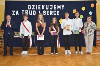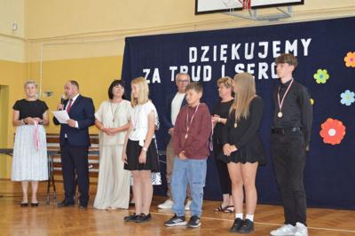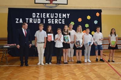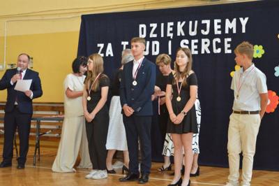 Uroczyste zakończenie roku szkolnego 2024/2025 Żegnaj szkoło żegnaj! wołają wakacje. W dali błękit, zieleń kwitnące akacje. W dali szumią lasy, srebrzą się strumienie. Żegnaj szkoło żegnaj! Wszystkim do widzenia! Galeria zdjęć Powiązane wiadomości Czytanie zbliża. Żegnamy przedszkole. Pożegnanie klasy 8. Uroczyste zakończenie roku szkolnego 2024/2025 Ogólnopolski Projekt Edukacyjny "Alfabet logopedyczny" Inauguracja roku szkolnego 2025/2026. Drukuj Udostępnij Data dodania: 27.06.2025 Wyświetlono: 410 Aktualności
