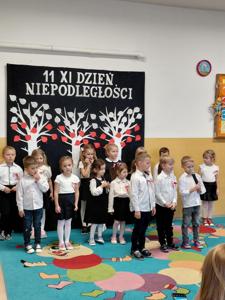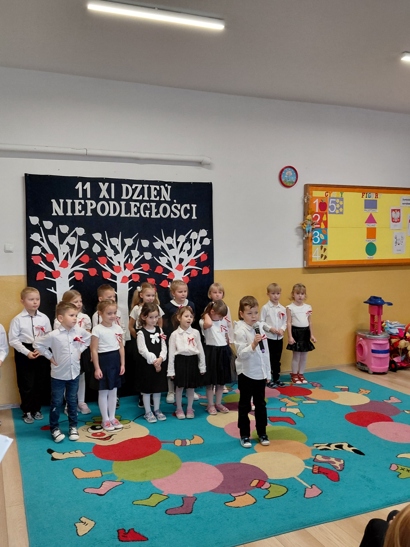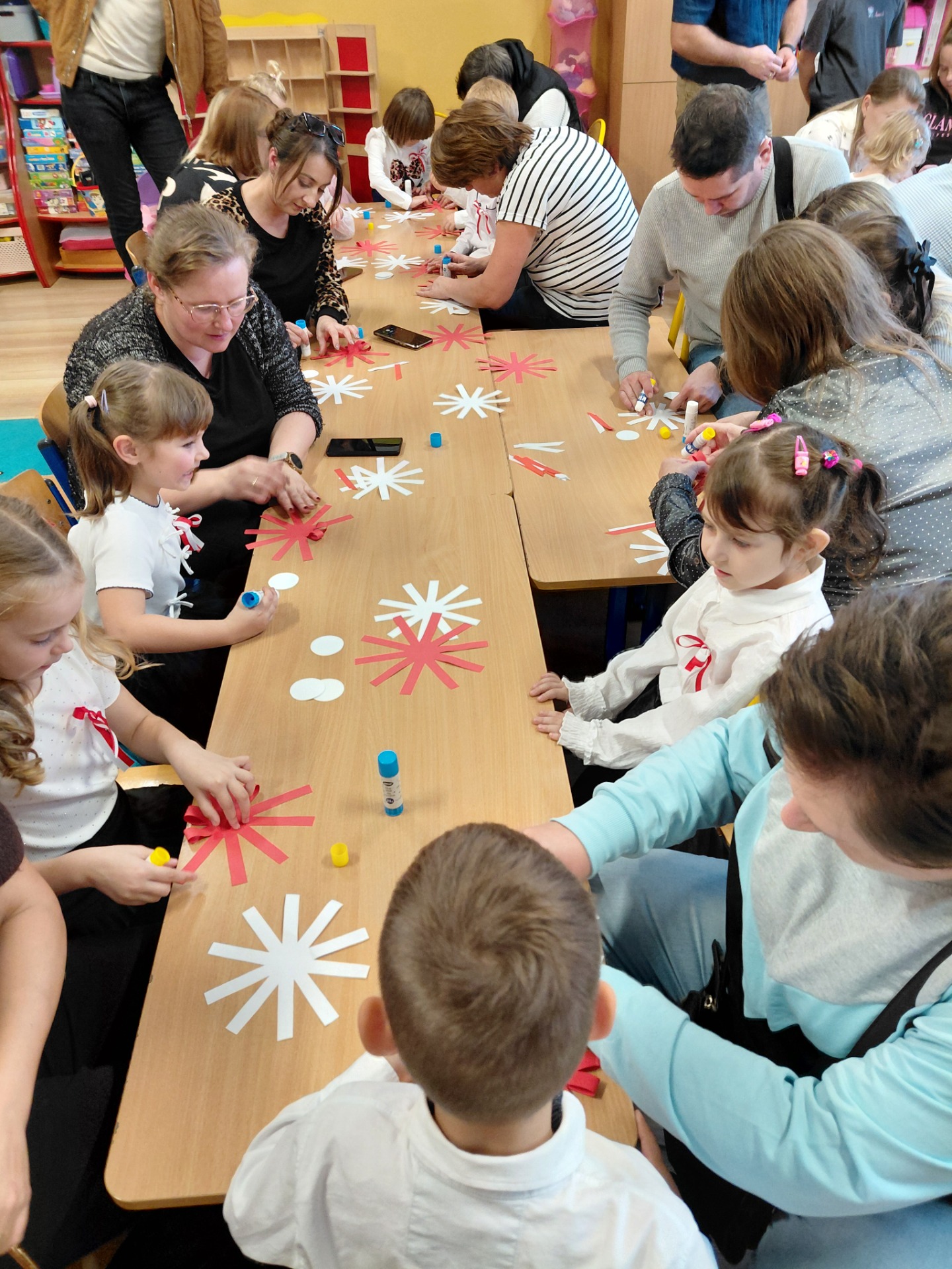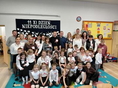 Z okazji Święta Niepodległości dzieci z grupy "Biedroneczki" przygotowały akademię patriotyczną, podczas której zaprezentowały wiersze i piosenki o Polsce. Mali artyści z dużym zaangażowaniem i wzruszeniem wystąpili przed swoimi rodzicami, przypominając jak ważna jest wolność i miłość do ojczyzny. Po części artystycznej odbyły się warsztaty rodzinne, podczas których dzieci wspólnie z rodzicami wykonały biało-czerwone kotyliony. Wspólna praca dostarczyła wszystkim wiele radości.