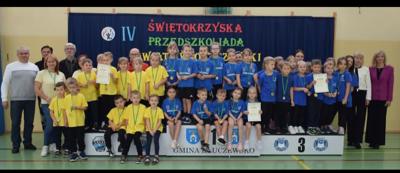 Dnia 24 listopada dzieci z naszego przedszkola wzięły udział w IV Świętokrzyskiej Przedszkoliadzie - etapie powiatowym, w którym rywalizowały zwycięskie reprezentacje z sześciu gmin naszego powiatu. Zawody zgromadziły przedszkolaków pełnych energii, entuzjazmu i sportowego ducha.