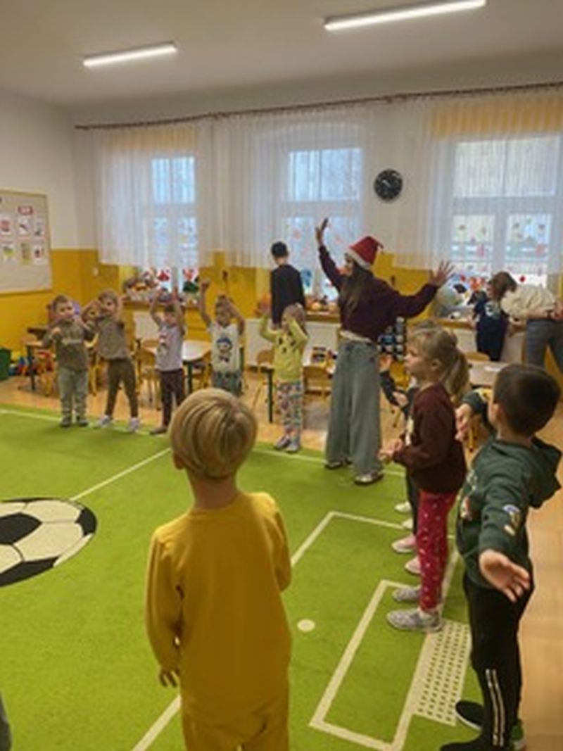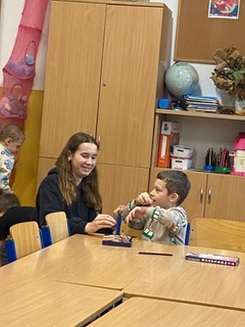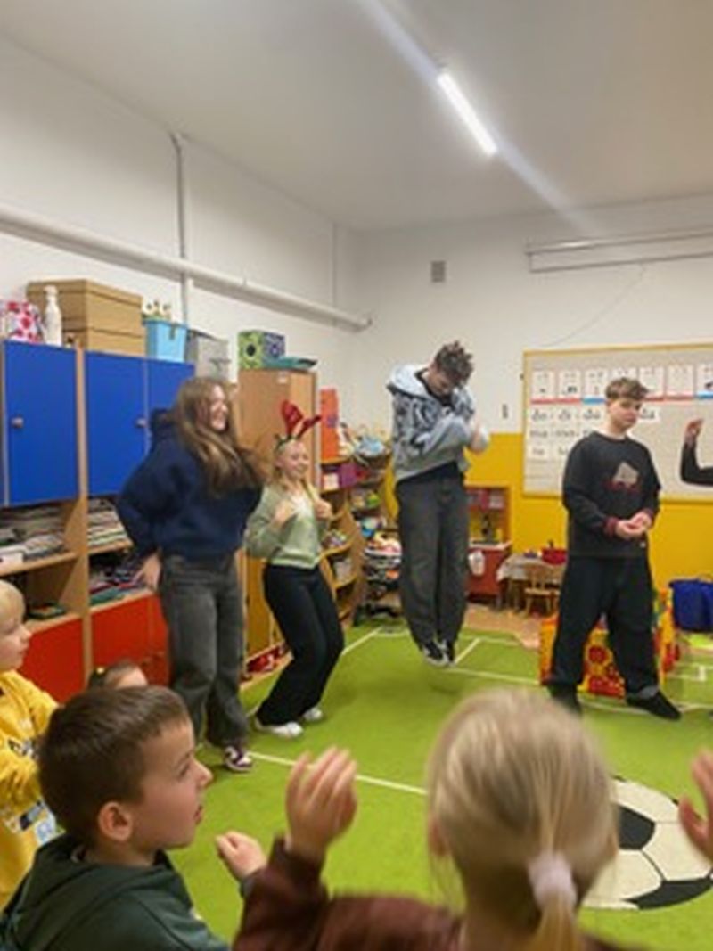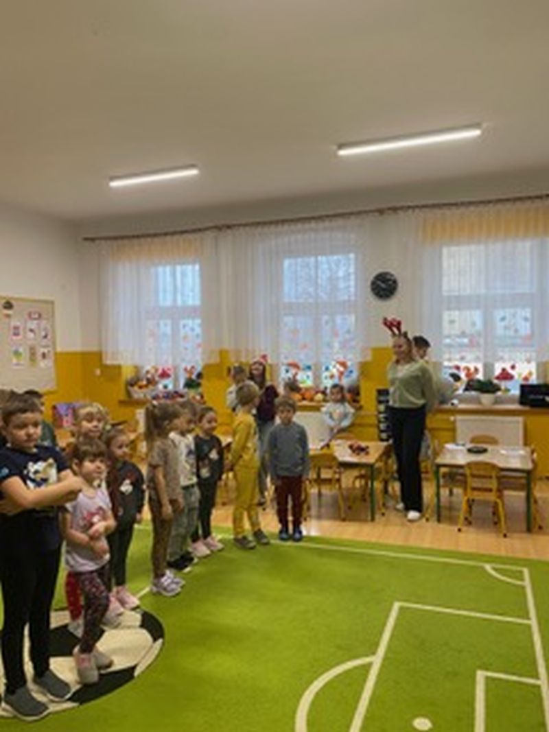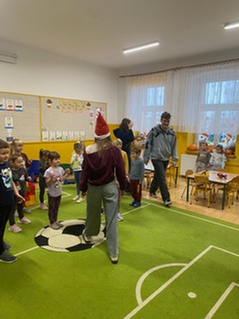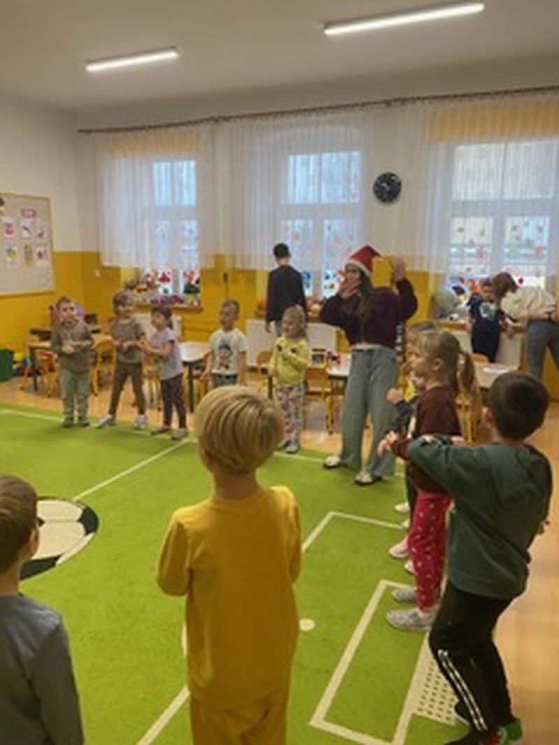 Odwiedziny uczniów klasy VII w przedszkolu w grupach: Biedroneczki, Krasnoludki i Motylki.