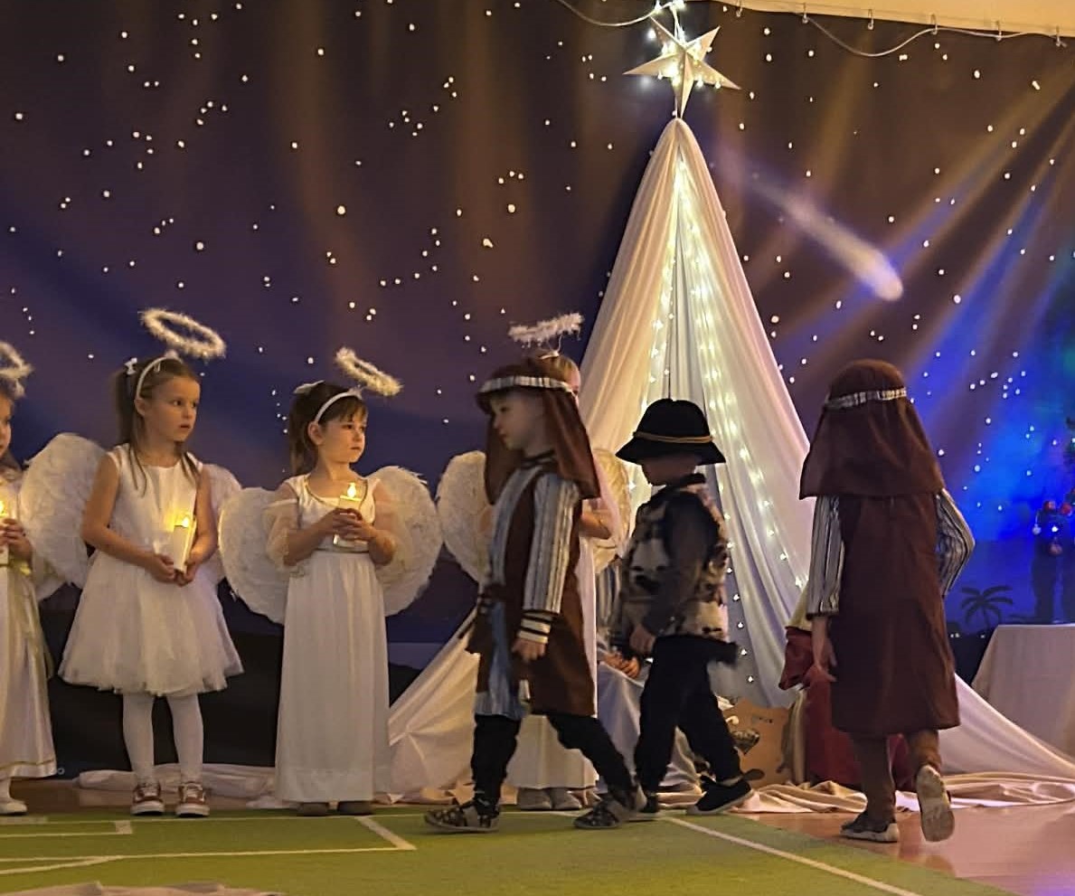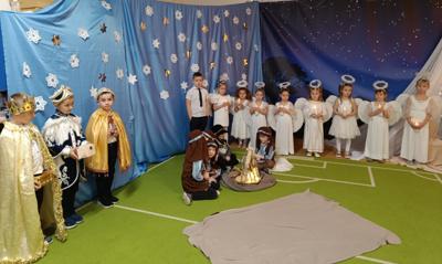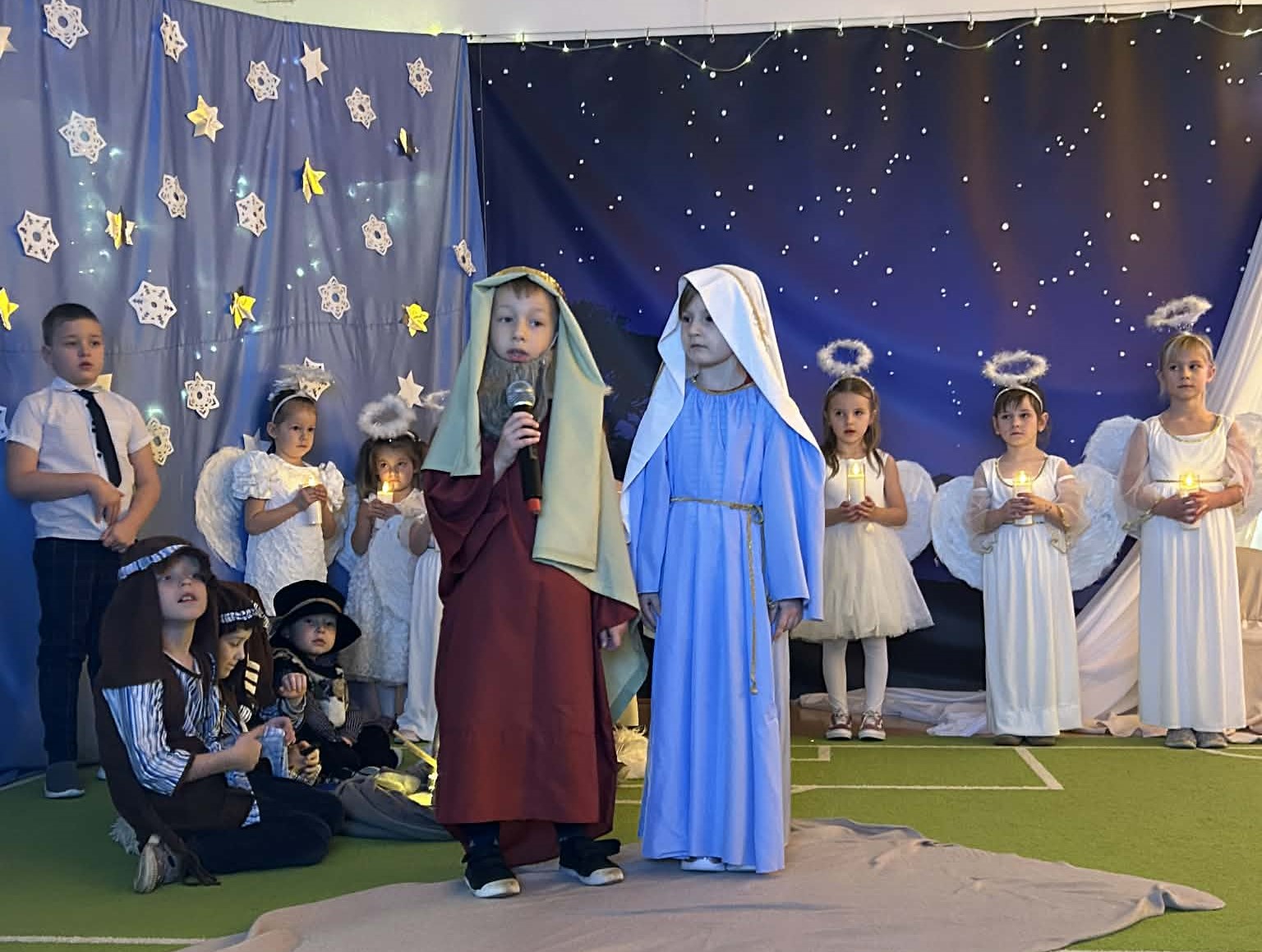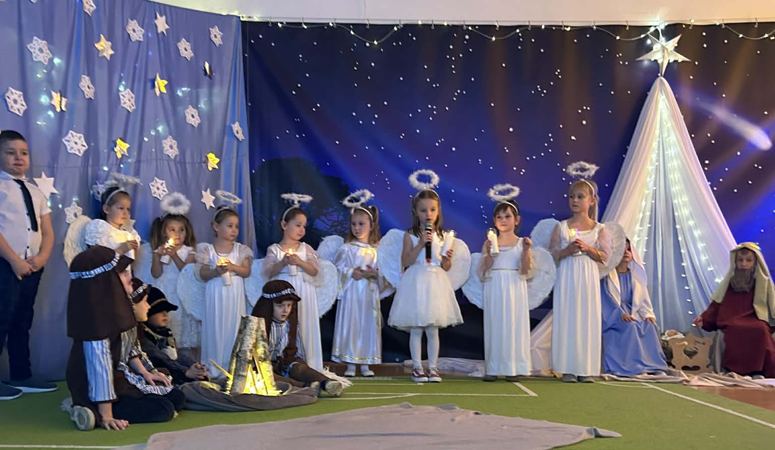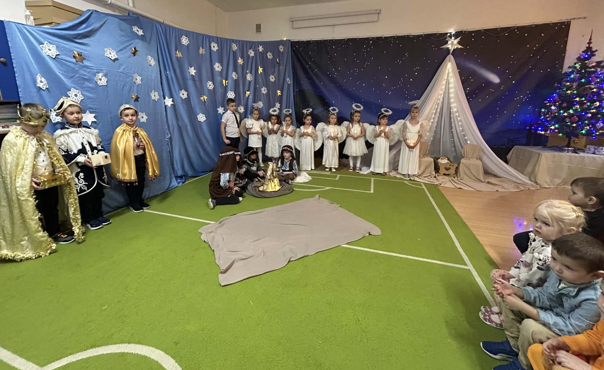 „Dzisiaj w naszym przedszkolu wydarzyło się coś magicznego... ✨ Małe aniołki, pasterze i królowie z grupy Krasnoludki przenieśli nas prosto do Betlejem. Jesteśmy dumni z naszych młodych aktorów, którzy z takim przejęciem i odwagą wystąpili na scenie. Dziękujemy rodzicom za obecność i wspólne kolędowanie! To był czas pełen wzruszeń i świątecznego ciepła. 🎄❤️"