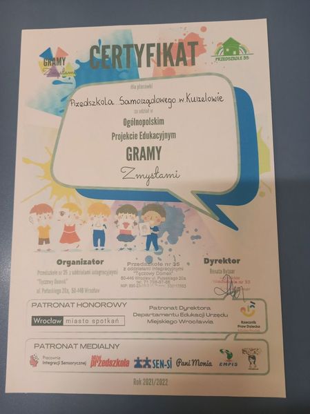 20.06.2022 Aktualności Ogólnopolski Projekt Edukacyjny: "Gramy Zmysłami". W roku szkolnym 2021/2022 w Przedszkolu Samorządowym w Kurzelowie realizowany był Ogólnopolski Projekt Edukacyjny " Gramy Zmysłami". W projekcie wzięły udział dzieci z grupy Motylki,... Czytaj więcej